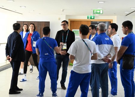 BrendSport.az xəbər verir ki, Nazir Fərid Qayıbov noyabrın 7-də atletlər kəndinə baş çəkib, Oyunlarda iştirak edən Azərbaycan idmançıları ilə görüşüb, onların yaşayış, məşq və qidalanma şəraiti ilə maraqlanıb, komandamızın hazırlıq prosesi barədə məlumat alıb.