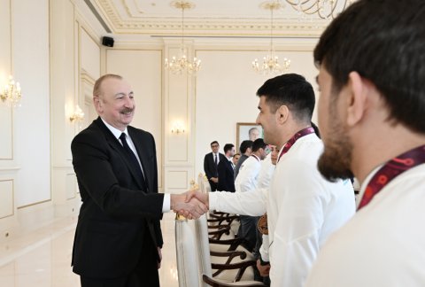Prezident İlham Əliyev Avropa çempionatında komanda hesabında birinci olan güləşçiləri qəbul edib