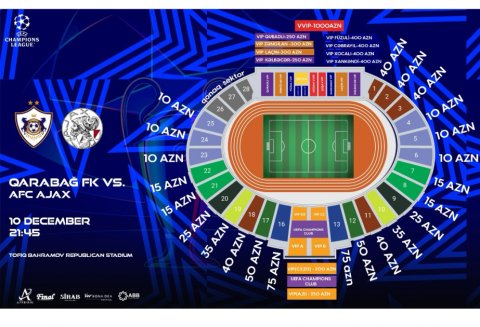UEFA Çempionlar Liqasının liqa mərhələsi çərçivəsində keçiriləcək “Qarabağ” - “Ayaks” (Niderland) oyununun biletləri satışa çıxarılıb.