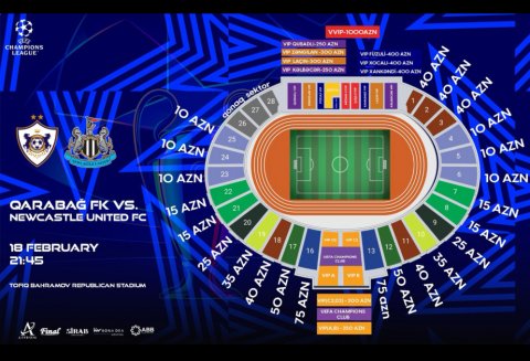 UEFA Çempionlar Liqasının pley-off mərhələsində Bakıda “Qarabağ” və İngiltərənin “Nyukasl” komandaları arasında keçiriləcək ilk oyuna biletlərin qiyməti açıqlanıb.